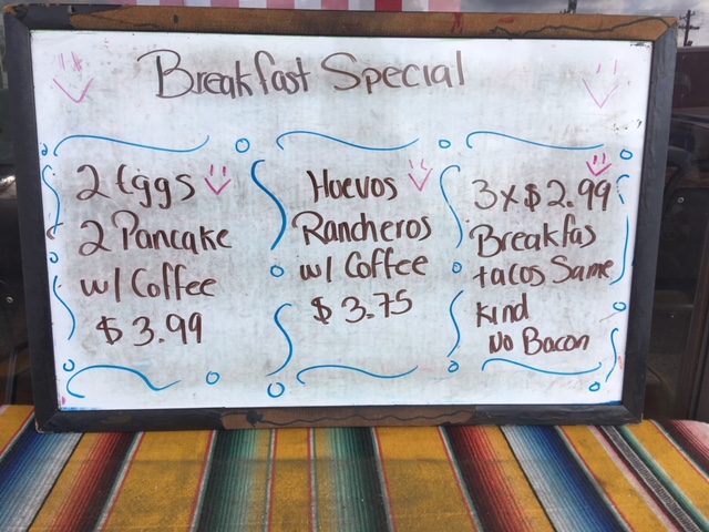 The owners aim to bring the flavors (sabor) of Mexico to your table. They are open daily from 6:30 a.m. until 2:30 p.m. except for Sundays, when they are open from 7:30 a.m. to 2:30 p.m.